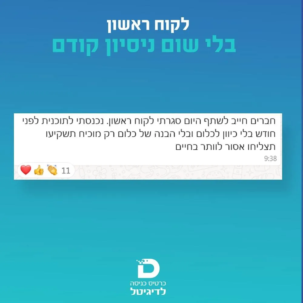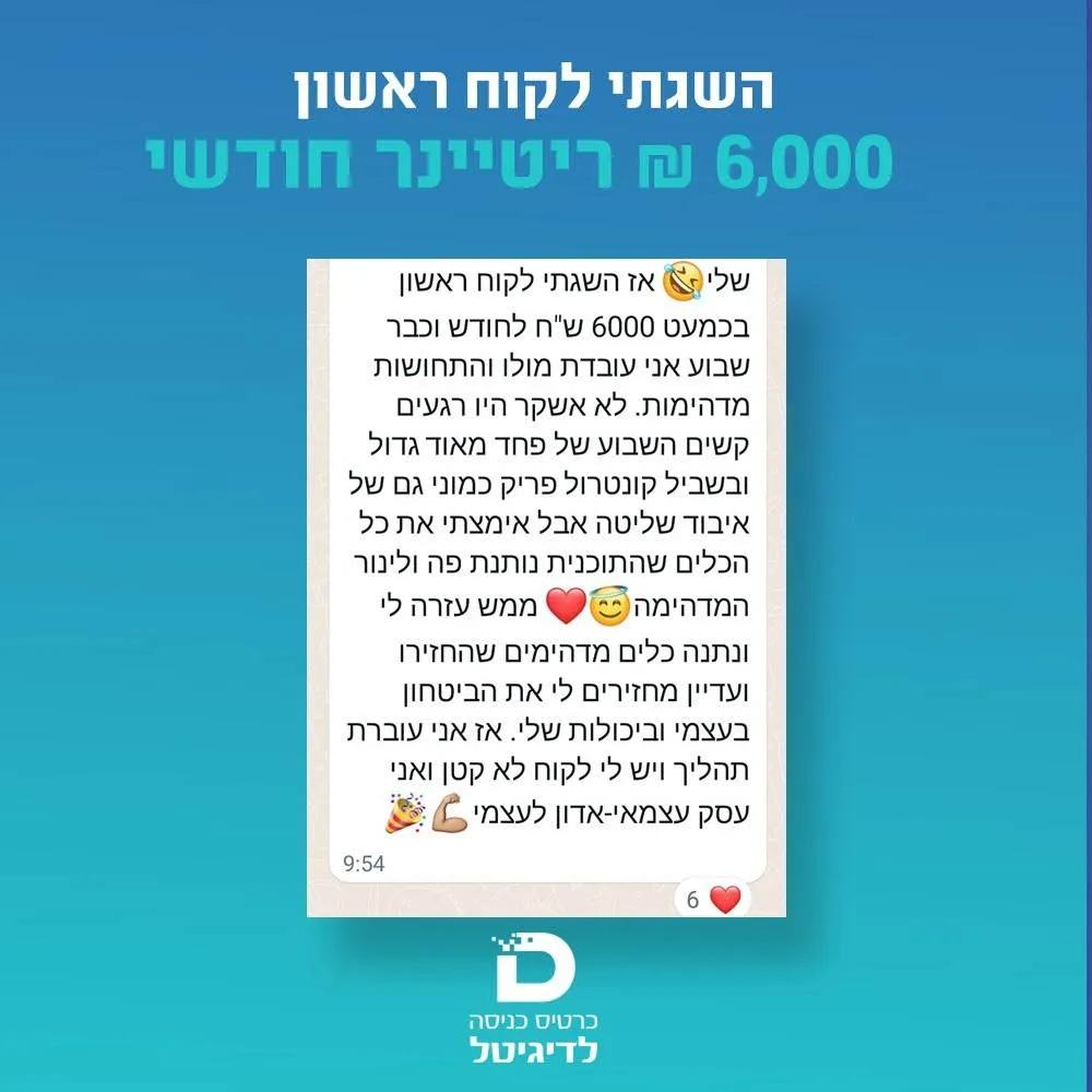 ממלאים את השאלון הקצר ומקבלים שיחת פיצוח עם תכנית מותאמת אישית ליצירת פרנסה מהבית גם אם אין לך ניסיון קודם!בעוד 24 שעות אתה תהיה עם ביטחון ועם כיוון ברור לגבי המטרות שלך!